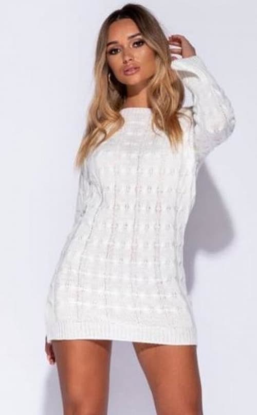 Get your hands on some of the hottest knitwear around be ready for the new season. This cable knit jumper dress featuring flare sleeves is great teamed with tights & boots.